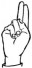 На ћирилици написано РАДЕ КЛИНЦОВ састоји се из 11 слова [?]. Исписано ћириличном једноручном азбуком за глувонеме: